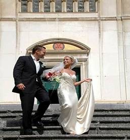 走到圣壇前,總統把露西交給帕特里克。新郎新娘挽著手走上圣壇,跪在鋪著緞子的禱告臺上。做完彌撒,大主教宣讀了教皇拍來向這對新人祝福的電報。