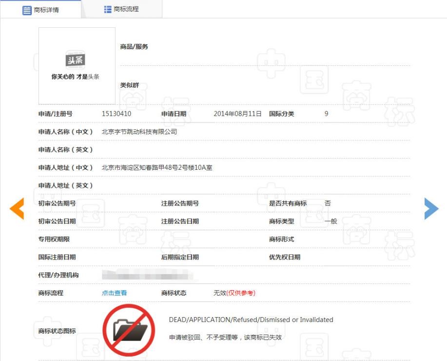 法院認為,該申請商標由中文文字“頭條您關心的才是頭條”及圖形構成。以相關公眾的認知水平,訴爭商標的中文文字部分相關公眾一般會將其認定為廣告用語或者標語口號,雖然訴爭商標號包括圖形部分,但是由于訴爭商標中文文字部分的存在,將訴爭商標使用在指定使用的商品上,其整體上仍不具有作為商標的識別作用。