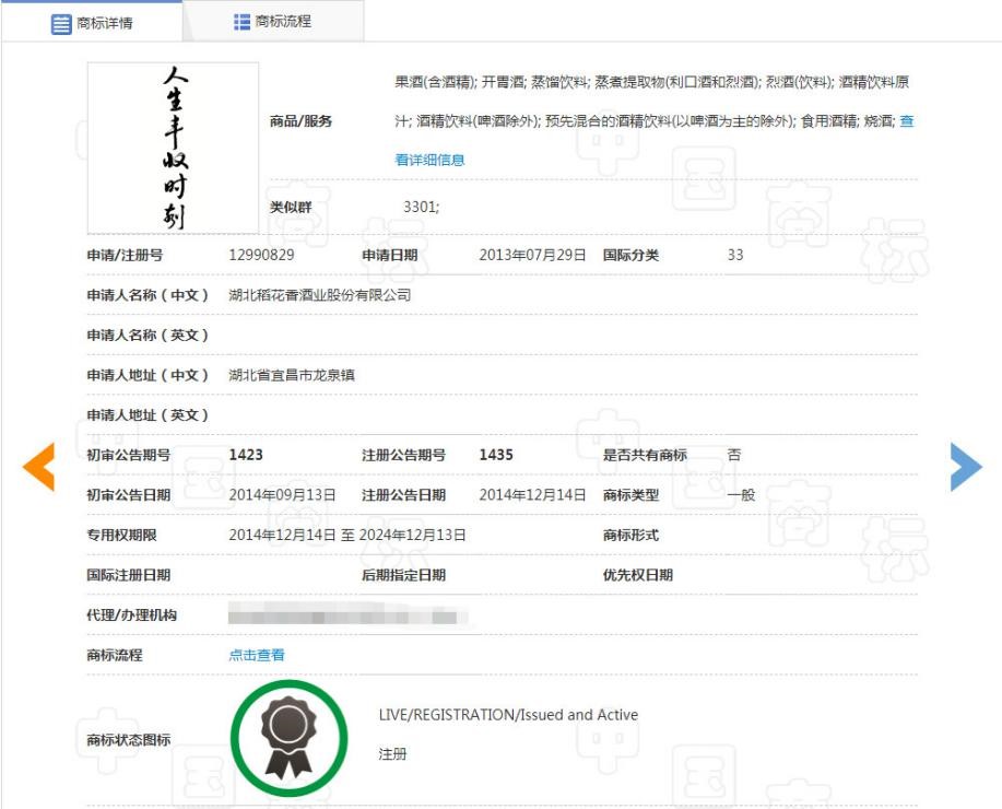 作為廣告語,“人生豐收時刻”之所以能在第33類“酒精飲料”等商品上獲準注冊的原因在于,其具有較強的獨創性,與酒商品行業通常使用的宣傳用語區別較大,故相關公眾能夠將該短語作為商標對待,通過其識別商品來源。因此,“人生豐收時刻”自身具有顯著性。