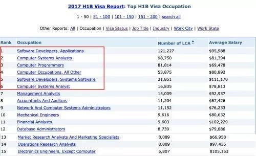 2017財(cái)年H1B申請(qǐng)最多的職業(yè)排行Top16里,前六位全部和計(jì)算機(jī)相關(guān)專業(yè)沾邊。所以CS還是大熱。而會(huì)計(jì)、機(jī)械、金融也緊隨其后。